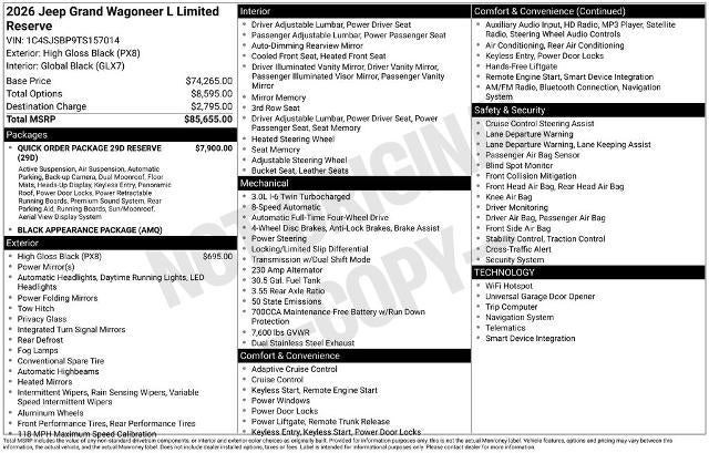 2026 Jeep Grand Wagoneer L Limited Reserve 4x4