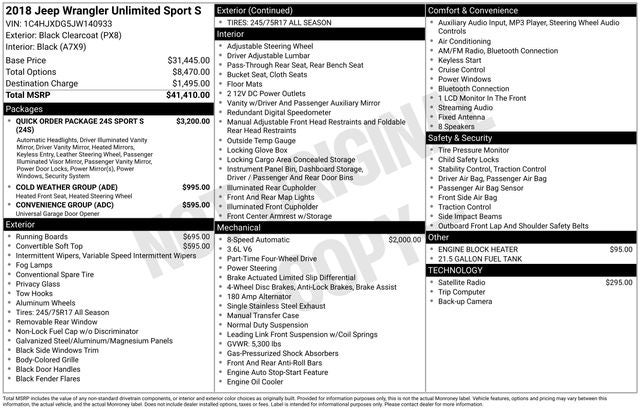 2018 Jeep Wrangler Unlimited Sport S