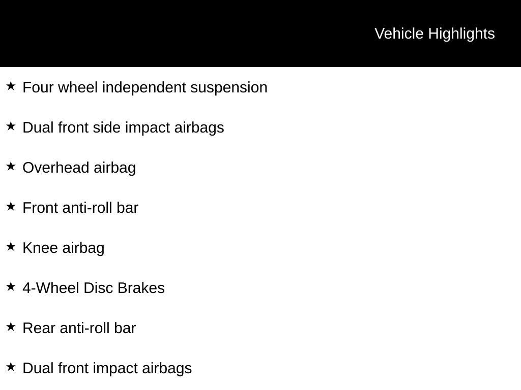 - Dual front side impact airbags