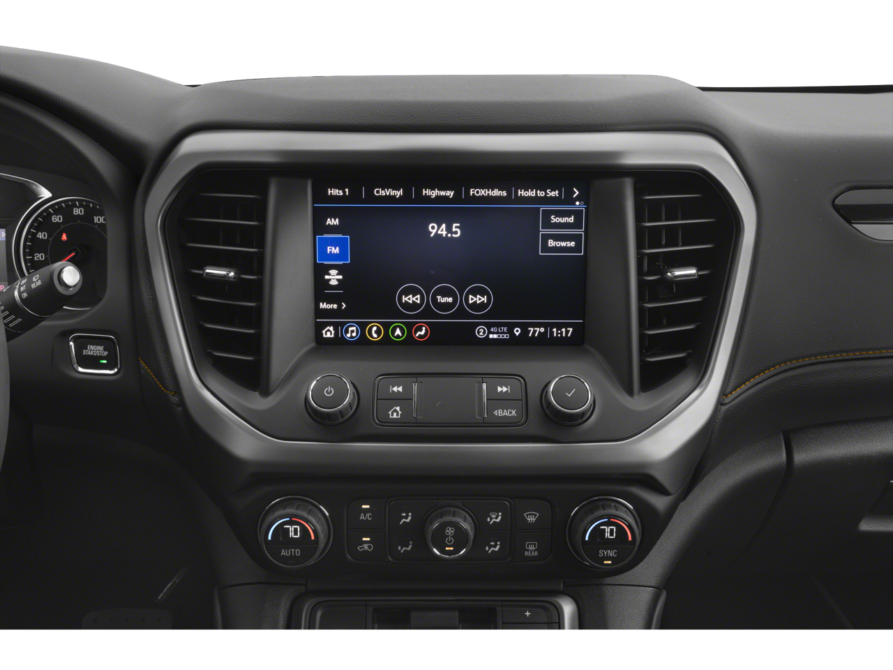 • 8" diagonal GMC Infotainment System with Navigation, includes multi-touch display, AM/FM/SiriusXM1 radio