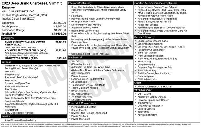 Elevate every drive in this beautifully equipped 2023 Jeep Grand Cherokee L Summit Reserve the pinnacle of Jeep luxury with three-row versatility, cutting-edge safety, and first-class comfort.
