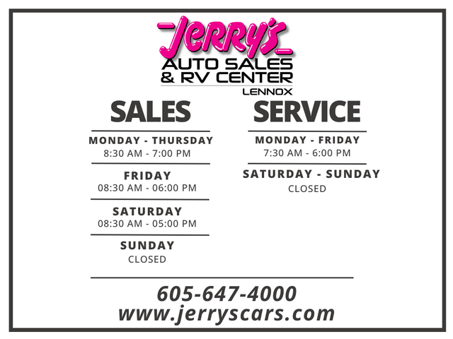 Since 1979, Jerrys Auto Sales has proudly served Sioux Falls and the surrounding communities including Sioux City, Mitchell, Vermillion, Yankton and Brookings. With the best selection of late model, low mileage units, Jerrys can provide you with a high quality vehicle at a great value. We encourage you to visit us at Jerrys and check out our great selection of vehicles or call one of our sales professionals at 605-647-4000.