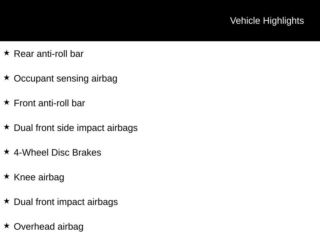 - Dual front side impact airbags